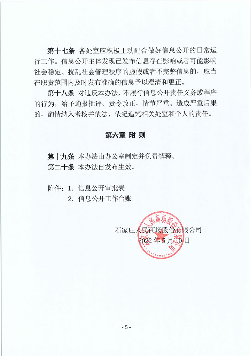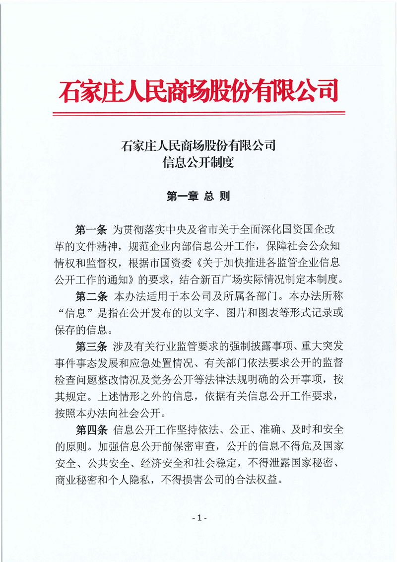 石家莊人民商場股份有限公司信息公開制度