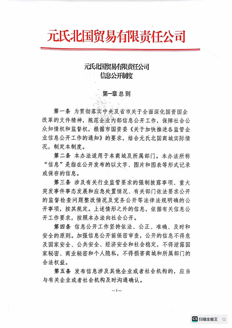 元氏北國貿(mào)易有限責(zé)任公司信息公開制度