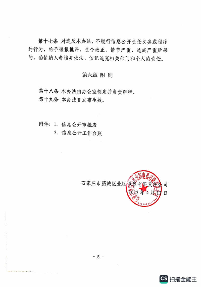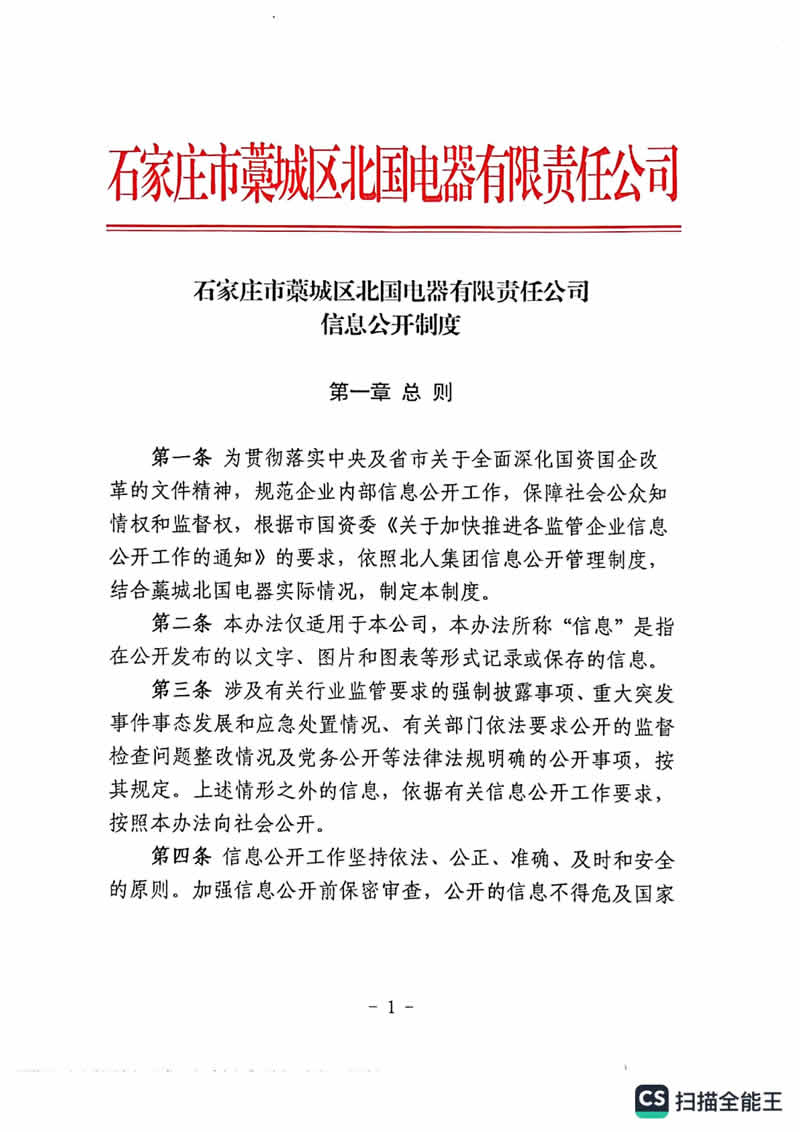石家莊市藁城區(qū)北國電器有限責任公司信息公開制度