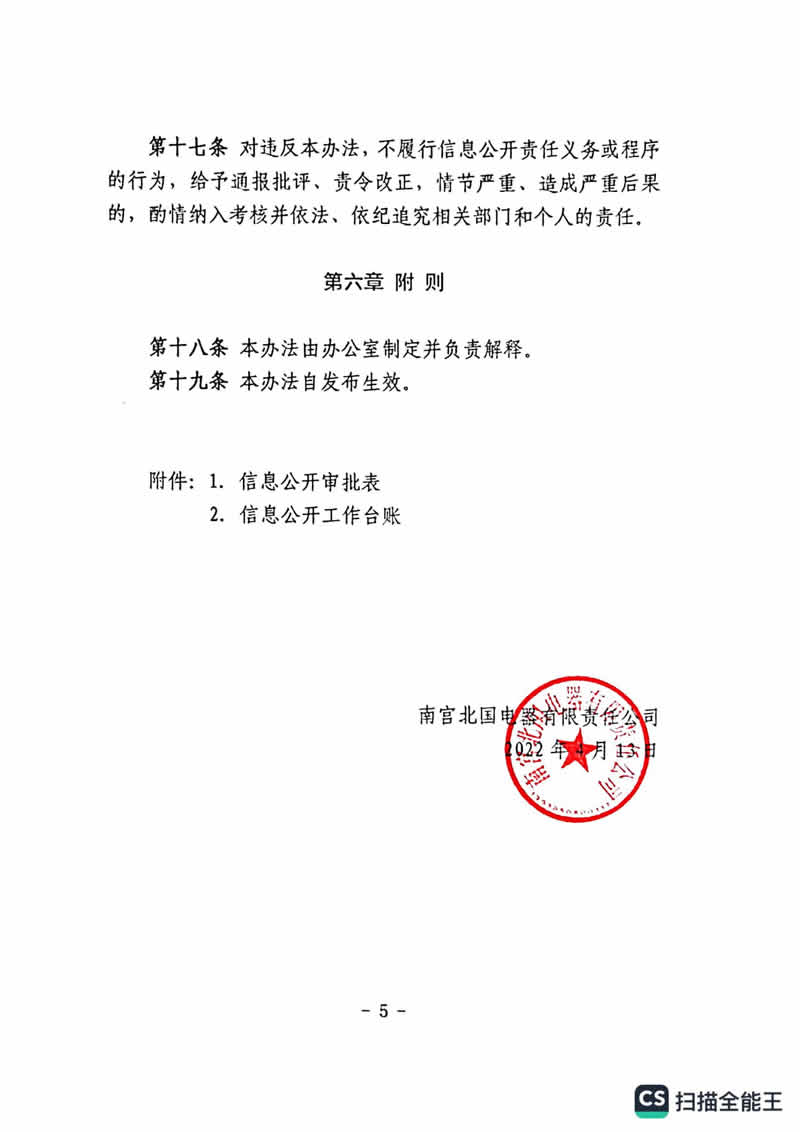南宮北國電器有限責(zé)任公司信息公開制度