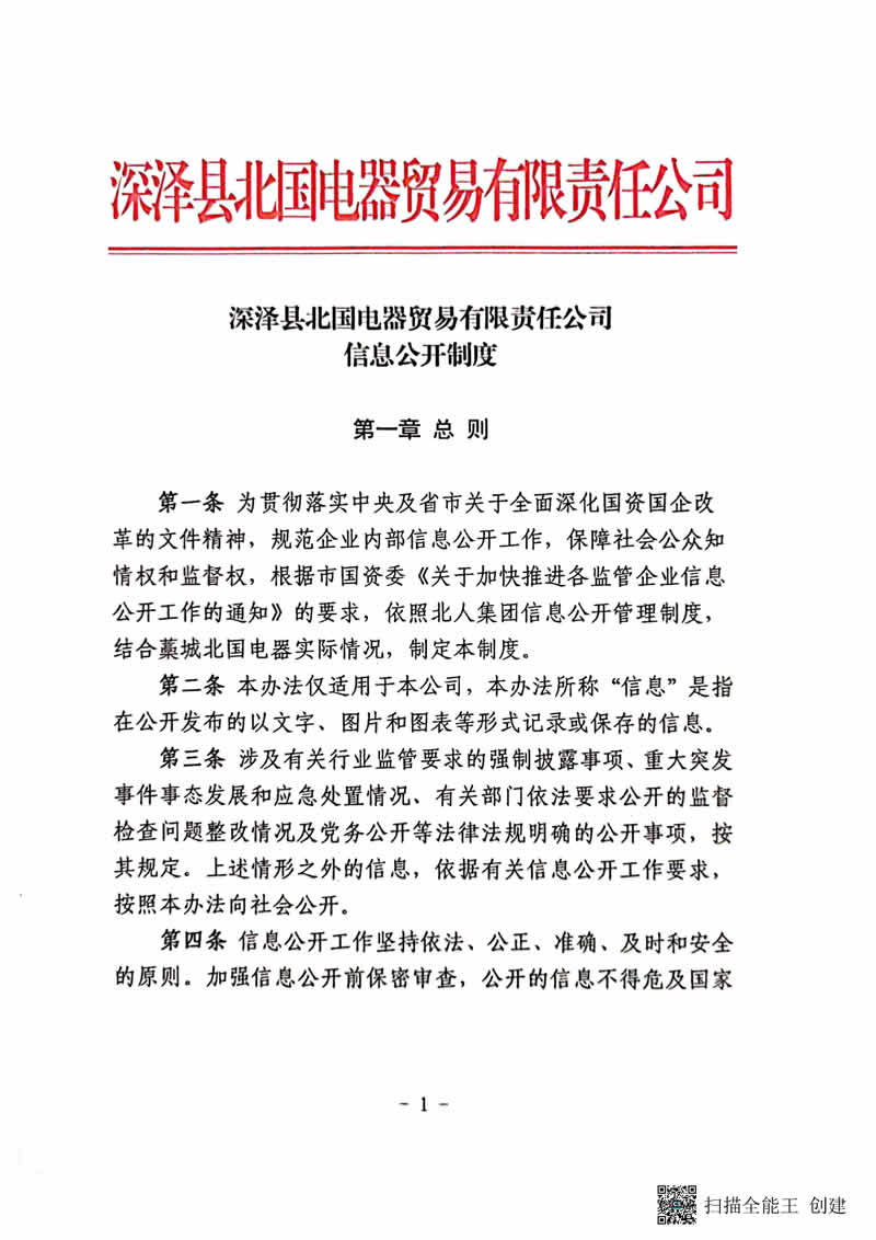 深澤縣北國電器貿(mào)易有限責(zé)任公司信息公開制度