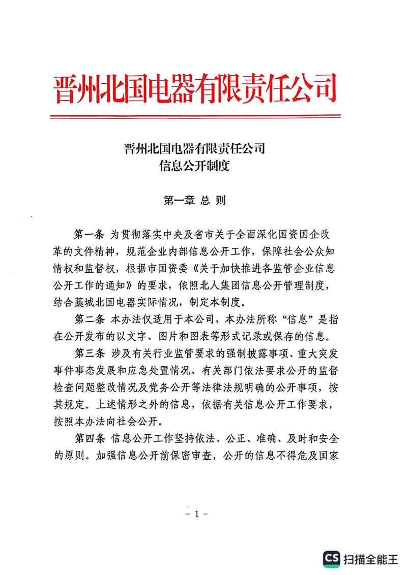 晉州北國(guó)電器有限責(zé)任公司信息公開制度