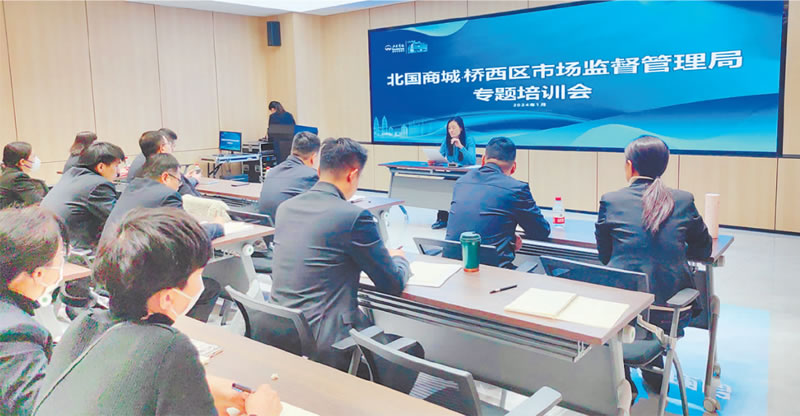 為強(qiáng)化團(tuán)隊專業(yè)知識素養(yǎng),提升消費(fèi)者滿意度,1月12日下午,北國商城特邀橋西區(qū)市場監(jiān)督管理局廣告科楊珍玲、知識產(chǎn)權(quán)科袁景立、反不正當(dāng)競爭科郭劍及休門市場監(jiān)督管理所所長郄君南對北國商城中層、主管、品牌店長40余人開展《廣告法》《知識產(chǎn)權(quán)法》《反不正當(dāng)競爭法》《食品安全法》及3.15投訴案例專題培訓(xùn)。