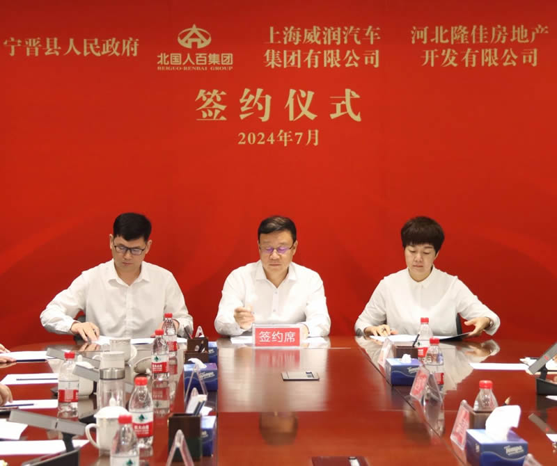 7月31日上午,寧晉縣人民政府、寧晉縣相關(guān)企業(yè)與北人集團(tuán)簽約儀式在北人集團(tuán)舉行。寧晉縣委書(shū)記王濤,縣委常委、常務(wù)副縣長(zhǎng)張康寧,縣委常委、辦公室主任申立強(qiáng),政府副縣長(zhǎng)王志輝,上海威潤(rùn)汽車(chē)集團(tuán)有限公司總經(jīng)理胡棟梁,河北隆佳房地產(chǎn)開(kāi)發(fā)有限公司總經(jīng)理周立峰,北人集團(tuán)黨委書(shū)記、董事長(zhǎng)徐建航,黨委副書(shū)記、副董事長(zhǎng)、總經(jīng)理胡文茹,黨委副書(shū)記、工會(huì)主席趙雪飛,副總經(jīng)理王慧橋、劉雋出席簽約儀式。
