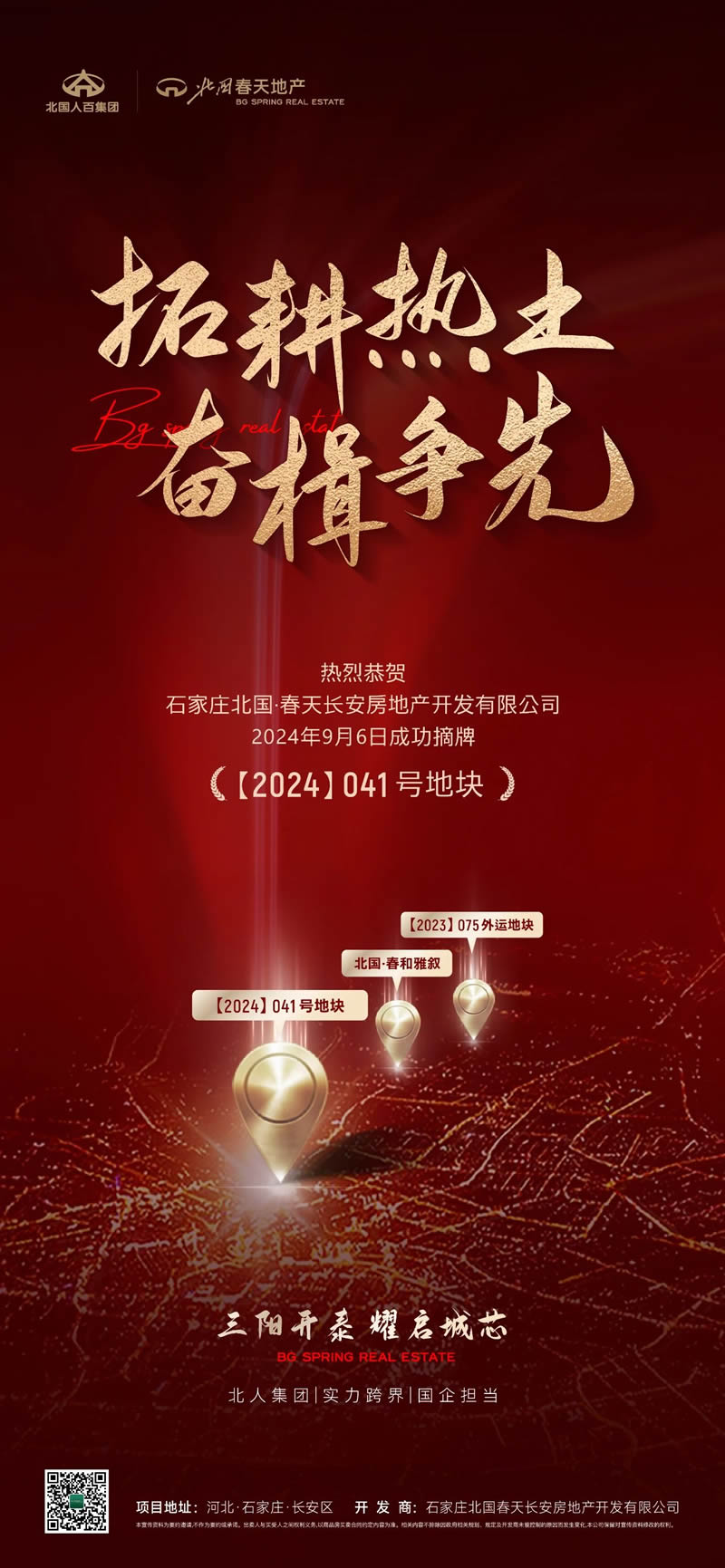 9月6日下午,北人集團旗下石家莊北國春天長安房地產(chǎn)開發(fā)有限公司再傳捷報,成功竟得【2024】041稀缺地塊。