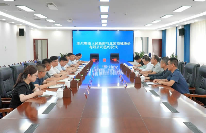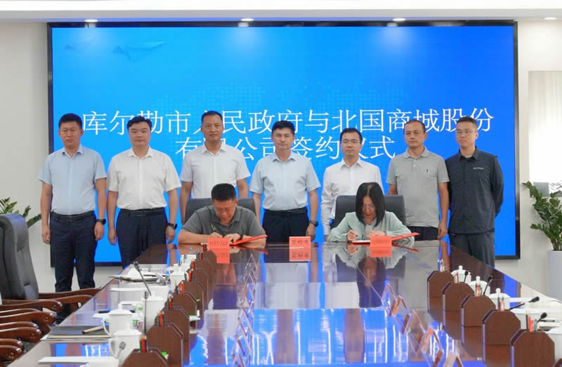 9月8日下午,庫爾勒市人民政府與北國商城股份有限公司簽約儀式在庫爾勒市舉行。庫爾勒市委副書記、市長吐依坤·阿不都外力,市委副書記、石家莊市援疆工作前方指揮部指揮長趙峰,市委常委、副市長、石家莊市援疆工作前方指揮部副指揮長牛云飛,副市長王波、張鵬,北人集團(tuán)黨委書記、董事長徐建航,黨委副書記、工會主席趙雪飛,北國股份副總經(jīng)理白麗茹,北國超市事業(yè)部副總經(jīng)理宋京巖等出席簽約儀式。