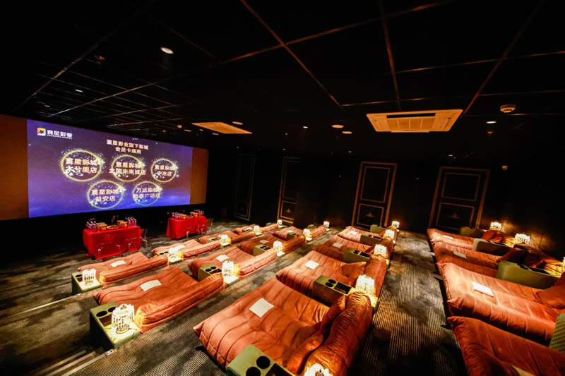 寰星影城整體以橙藍對比色為主色調(diào),擁有7個影廳,共585個座位,包含豪華VIP床廳、兒童廳、星空廳等不同特色主題。影廳全部采用全激光、高亮度進口巴可放映機、高保真3D環(huán)繞立體音響及不同形式的高級感座椅,讓顧客在觀影時更具尊貴性、私密性、舒適性。影城致力于提供優(yōu)質(zhì)而精心的服務(wù),從購票到入場、從觀影到離場,每個細(xì)節(jié)都精心安排,為觀影者打造賓至如歸的觀影體驗。