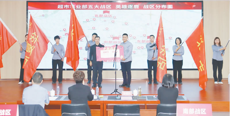 隨后,集團黨委書記、董事長徐建航,黨委副書記、副董事長、總經(jīng)理胡文茹,北國股份副總經(jīng)理白麗茹,超市事業(yè)部總經(jīng)理韓國斌分別為各戰(zhàn)區(qū)區(qū)長頒發(fā)任務(wù)指標牌,各戰(zhàn)區(qū)干部員工紛紛喊出口號,表達本戰(zhàn)區(qū)攻堅克難、拼搏進取的決心。