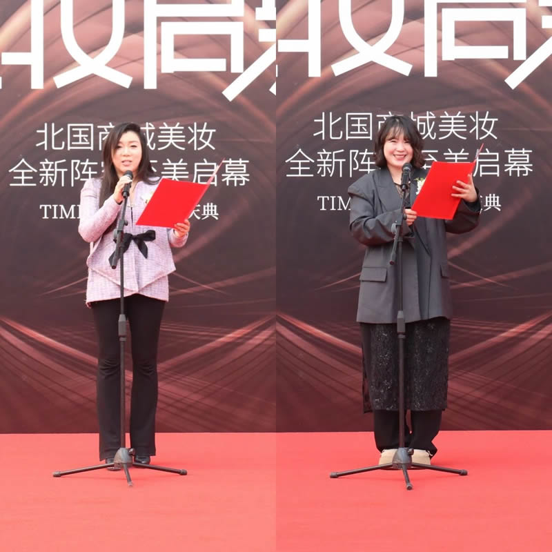 茵芙莎品牌全國銷售總監(jiān)劉冰、海藍(lán)之謎會員魯娜分別代表品牌方與會員上臺致辭,為北國商城化妝商場送上最誠摯的祝福。