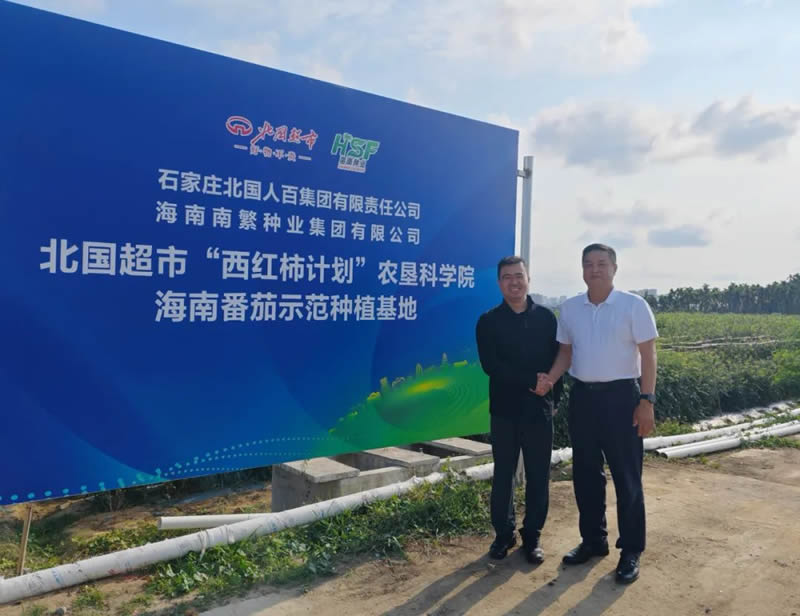 隨后,徐建航一行前往國(guó)家現(xiàn)代種業(yè)產(chǎn)業(yè)園、國(guó)家生物育種專區(qū)二期、北國(guó)南繁三亞南濱番茄生產(chǎn)基地及三亞芒果生產(chǎn)基地參觀,詳細(xì)了解基地選種、種植、養(yǎng)護(hù)、采收全流程運(yùn)營(yíng)模式。在北國(guó)南繁三亞南濱番茄生產(chǎn)基地,徐建航與海墾南繁集團(tuán)黨委書(shū)記、董事長(zhǎng)兼海南南繁種業(yè)集團(tuán)有限公司總經(jīng)理吳海江共同為基地揭牌,標(biāo)志著北國(guó)超市優(yōu)種訂單種植合作模式向縱深推進(jìn),“西紅柿計(jì)劃”實(shí)現(xiàn)新的突破。