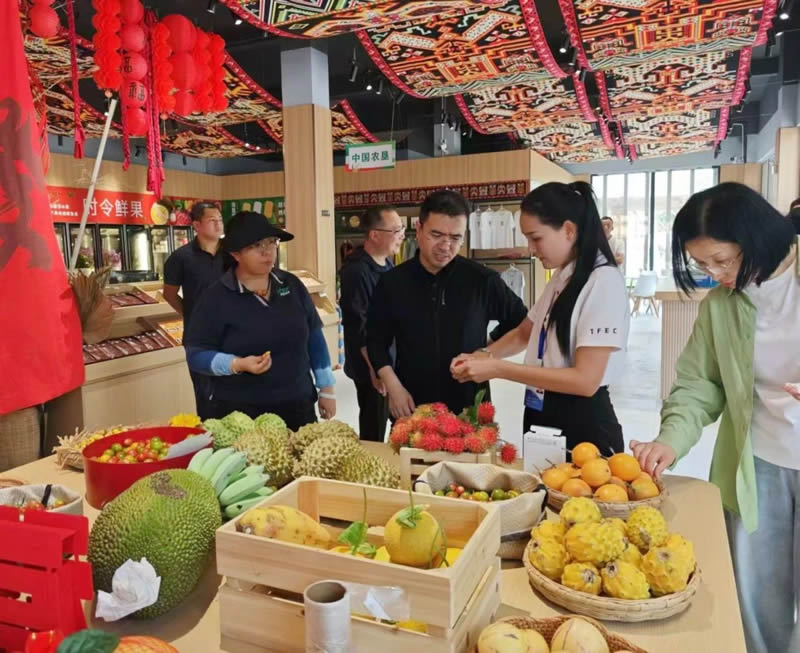 徐建航一行參觀了果博中心的紅毛丹種植基地、榴蓮種植基地、科研溫室大棚等,深入考察保亭縣在熱帶水果種植領(lǐng)域展開(kāi)的相關(guān)工作及保亭農(nóng)業(yè)品牌發(fā)展歷程,系統(tǒng)了解紅毛丹、山竹、榴蓮等保亭特色熱帶水果的種植技術(shù)和生長(zhǎng)規(guī)律。