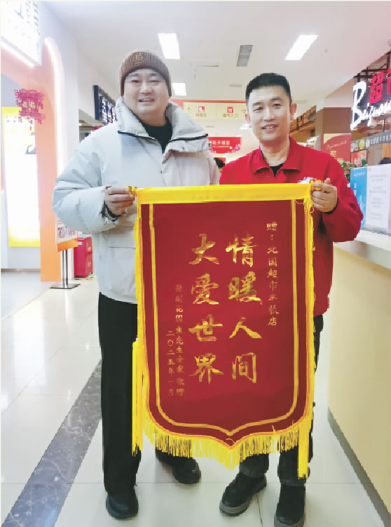 1月23日晚,一對夫妻帶著一名兩歲左右的小女孩在散貨區(qū)購物時,小女孩不慎將一顆桂圓吞入,瞬間呼吸困難,小臉憋得通紅。孩子父母驚慌失措,急忙抱著孩子沖向服務(wù)臺尋求幫助。客服人員任曉冉立即撥打120急救電話,酒飲部主管底娜和營銷科長張麗軍在醫(yī)護(hù)人員的電話指導(dǎo)下,冷靜且熟練地實(shí)施海姆立克急救法。終于,在大家的共同努力下,孩子吐出了桂圓,呼吸逐漸恢復(fù)正常。不一會兒,120救護(hù)車呼嘯而至。為確保孩子得到妥善的后續(xù)治療,北國超市的工作人員主動陪同顧客上了急救車。1月28日,顧客滿懷感激地送上錦旗,表達(dá)對超市員工及時救助孩子的深深謝意。錦旗上熠熠生輝的文字,是對底娜、張麗軍、任曉冉等員工關(guān)愛顧客的最好見證,他們用實(shí)際行動詮釋了北國超市“服務(wù)有愛”的理念,守護(hù)了一個家庭的幸福與安寧。