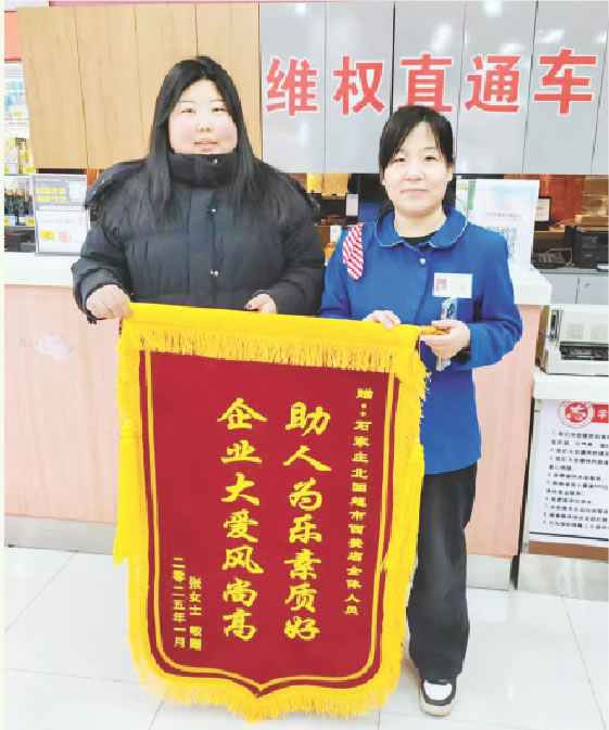 臨近閉店,兩位二十來歲的小姑娘焦急的跑到服務(wù)臺說手機丟了。高然然第一時間安撫女孩情緒并報警。她根據(jù)兩個女孩的購物路線幫助女孩確定了結(jié)款時間及款臺編號,以便查驗監(jiān)控,又將女孩送到監(jiān)控室,協(xié)助警察幫助女孩查找手機,最終在大家的共同努力下女孩的手機失而復(fù)得。本以為事情就這樣告一段落,沒幾天兩個女孩再次來到服務(wù)臺送上錦旗?吹藉\旗上寫道:贈北國超市西美店全體人員,助人為樂素質(zhì)好,企業(yè)大愛風(fēng)尚高,高然然心里別提多開心了。
