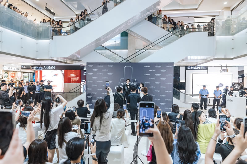 5月26日中午,蘭蔻品牌護(hù)膚大使張凌赫先后蒞臨北國商城、新百廣場、先天下廣場,與現(xiàn)場粉絲親密互動。