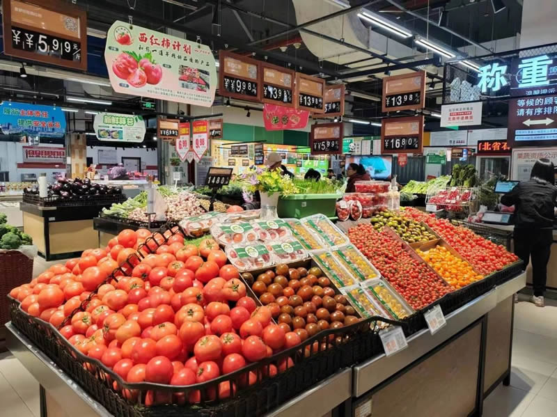 針對傳統(tǒng)果蔬流通環(huán)節(jié)冗長、層層加價與時間損耗導致品質下降的痛點,北人集團組建專業(yè)團隊,跨越十余個省份深入調研,在河北、山西、甘肅、內蒙古、遼寧、山東、云南、四川、海南等全國優(yōu)勢產區(qū)搭建起34個西紅柿直采基地。產地直采模式的實施,有效顛覆了傳統(tǒng)多級分銷路徑。海南基地的番茄于清晨采摘,當日完成分揀發(fā)運,借助集團高效的陸運物流網絡,3天內即可配送至石家莊各北國超市門店。這些高品質西紅柿銷量屢創(chuàng)新高,是消費者對“產地直采+高效物流+終端賣場”一體化運營模式的高度認可。