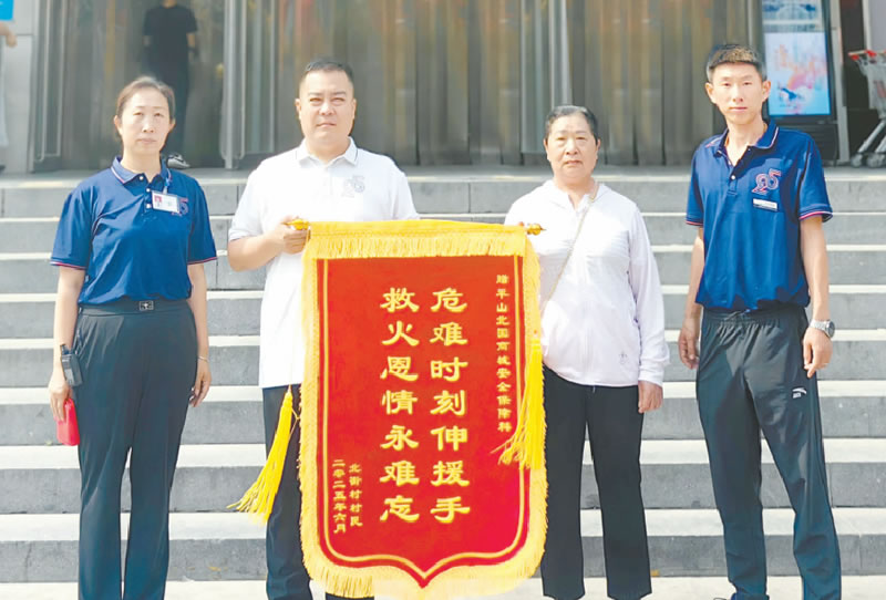 6月20日,平山北國商城附近民房突發(fā)火情。安全保障科梁哲輝、肖晨光迅速趕赴現(xiàn)場,沉著指揮滅火,僅用10分鐘便將火勢撲滅。二人臨危不懼、處置得當(dāng)?shù)谋憩F(xiàn)贏得村民高度贊譽(yù)。事后,獲救村民專程送來錦旗,對商城員工的專業(yè)素養(yǎng)和英勇行為表示衷心感謝。